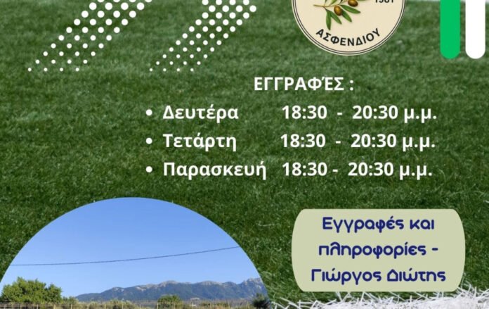 ⚪ Ο Α.Ο. Αναγέννηση Ασφενδιού ανακοινώνει την έναρξη των εγγραφών για τις ακαδημίες του συλλόγου μας για την ποδοσφαιρική περίοδο 2025 – 2026, που θα πραγματοποιηθούν από την Τετάρτη 20 Αυγούστου 2025.