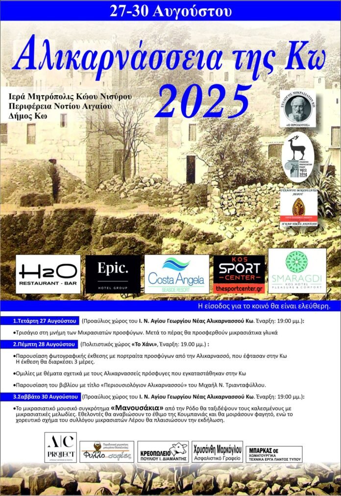 HomeAλλαΑνακοινώσειςΑλικαρνάσσεια Κω 2025: Εκδηλώσεις μνήμης και πολιτισμού 27-30 Αυγούστου Ανακοινώσεις Αλικαρνάσσεια Κω 2025: Εκδηλώσεις μνήμης και πολιτισμού 27-30 Αυγούστου By SkorpiosNews12 23/08/2025 0 223 Share FacebookTwitterPinterestWhatsApp TagsΑλικαρνάσσειαΔήμος ΚωΙερά Μητρόπολη Κώου & ΝισύρουΙστορίαΚωςΜικρασιάτεςΜνήμηΜουσικήΠεριφέρεια Νοτίου ΑιγαίουΠολιτιστικές Εκδηλώσεις Share FacebookTwitterPinterestWhatsApp Previous articleΚαταγγελία: Επικίνδυνη κατάσταση στον ποδηλατόδρομο Ψαλιδιού – Τραυματισμός νεαρού ποδηλάτη και αδιαφορία αρχώνNext articleΜε λαμπρότητα η Απόδοση της Κοιμήσεως της Θεοτόκου στην Κω – Εορτάστηκαν τα εννιάμερα της Παναγίας ΣΧΕΤΙΚΑ ΑΡΘΡΑ Ανακοινώσεις «Ο Μηνιαδόρος»: Ένας λογοτεχνικός θησαυρός για την Αντιμάχεια και τους ανθρώπους της 06/12/2025 Ανακοινώσεις Εγκαίνια της ανανεωμένης Φάτνης στα Λαϊκά την Παρασκευή 12 Δεκεμβρίου 06/12/2025 Ανακοινώσεις Προσωρινές κυκλοφοριακές αλλαγές στο Ιστορικό Κέντρο της Κω λόγω Χριστουγεννιάτικου Παζαριού 05/12/2025 LEAVE A REPLY Cancel reply Comment: Please enter your comment! Name: Please enter your name here Email: You have entered an incorrect email address! Please enter your email address here Website: Save my name, email, and website in this browser for the next time I comment. - Advertisment - - Advertisment - - Advertisment - - Advertisment - - Advertisment - - Advertisment - ΤΑ ΠΙΟ ΔΙΑΒΑΣΜΕΝΑ Πτώση δέντρου στην οδό Αρτεμησίας – Ευτυχώς χωρίς τραυματισμούς 08/12/2025 Γείτονες της οδού Αλικαρνασσού ζητούν παρέμβαση πριν τις γιορτές 08/12/2025 Η Κως μπήκε σε Χριστουγεννιάτικους ρυθμούς με το παραδοσιακό Παζάρι 08/12/2025 Στον Φοίβο ο Κουνάδης 08/12/2025 Load more ΠΡΟΣΦΑΤΑ ΣΧΟΛΙΑ Leonidas on Η συνταγή της ημέρας από τον σεφ Ηλία Μονογυιό – Παραδοσιακό παστίτσιο με κρέμα μπεσαμέλ