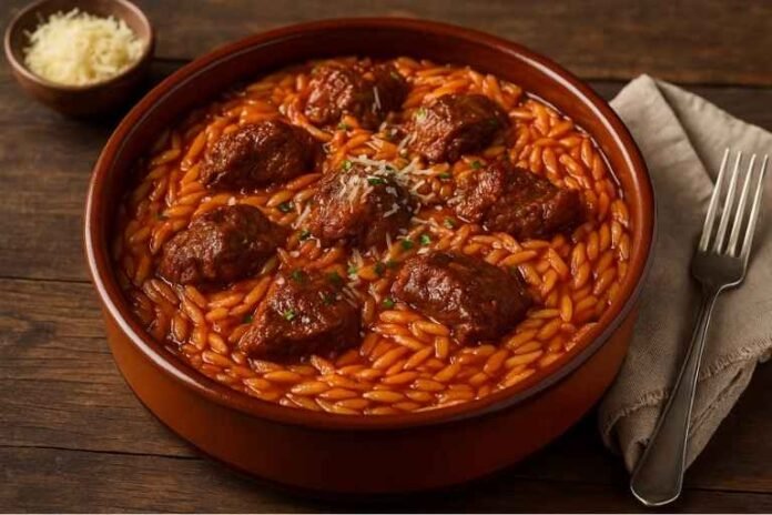 - Τελείομα: Όταν το κριθαράκι γίνει al dente και το κρέας τρυφερό, βγάζεις, αφήνεις 5’ να «σταθεί». Προαιρετικά, ανακατεύεις 1 κ.σ. βούτυρο για γυαλάδα. Σερβίρεις με τυρί.