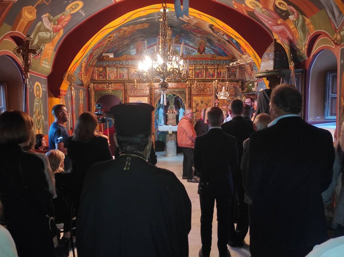 Χοροστατούντος, όπως κάθε χρόνο του Σεβαμιωτάτου Μητροπολίτου Κώου και Νισύρου κ. Ναθαναήλ, πλαισιωμένου από τον Γενικό Αρχιερατικό της Ιεράς Μητροπόλεως Πρωτοπρεσβύτερο π. Ιωάννη Διακοπαναγιώτη, και τους Ιερείς, π. Σακελλάριο Ζουλουφό μέχρι πέρσι υπεύθυνου της ενορίας, π. Αναστάσιο Τσουκνιά νέου υπεύθυνου της ενορίας, π. Ιωάννη Σταυρόπουλο και π. Ευτύχιο Παπαγεωργίου.