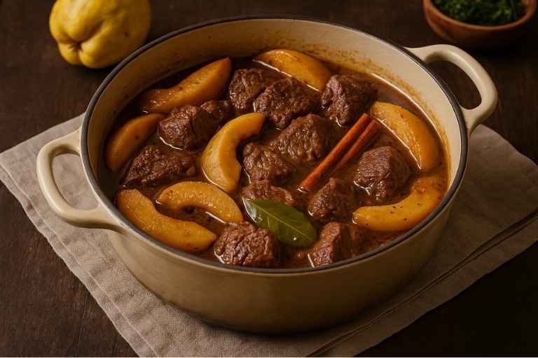 Ένα ξεχωριστό πιάτο, παραδοσιακό και αρωματικό, που παντρεύει το τρυφερό μοσχαρίσιο κρέας με τη γλυκόξινη γεύση των κυδωνιών. Μια γνήσια ελληνική συνταγή που γεμίζει το σπίτι μυρωδιές και θυμίζει παλιά Κυριακάτικα τραπέζια.
