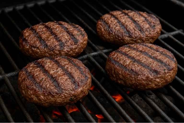 - Ψήνεις τα μπιφτέκια 6–7 λεπτά από κάθε πλευρά, χωρίς να τα πιέζεις, για να μη χάσουν τα υγρά τους.