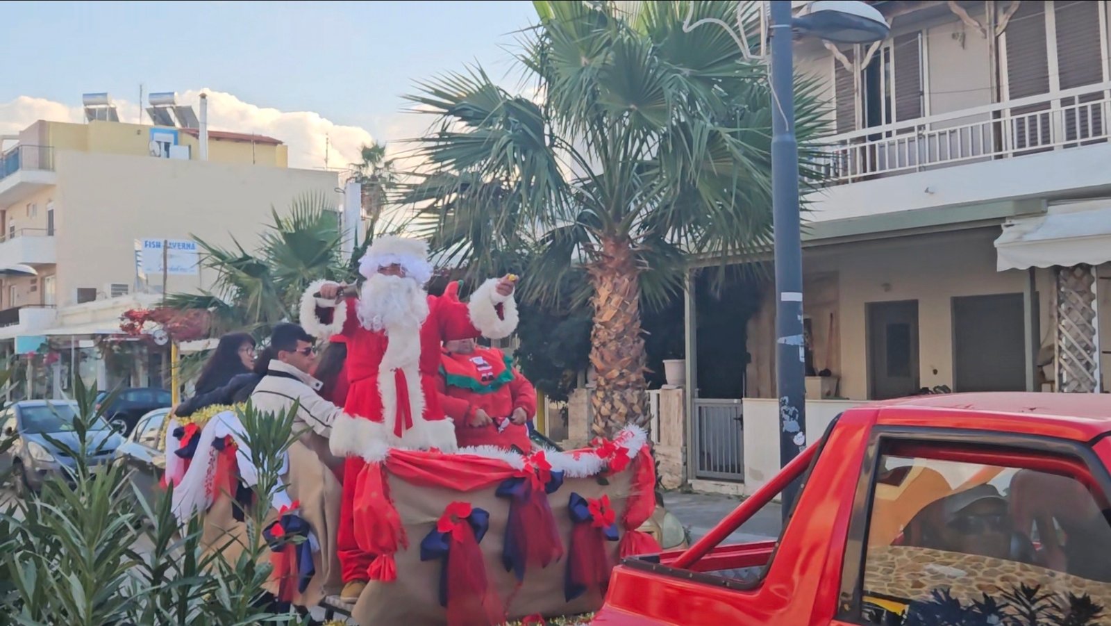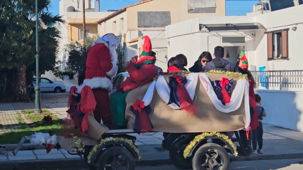 Σήμερα οι γειτονιές γέμισαν χαμόγελα και γιορτινή διάθεση. Ο Άγιος Βασίλης βγήκε στους δρόμους και μοίρασε δώρα και γλυκά σε μικρούς και μεγάλους.