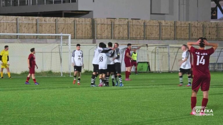 Οι γηπεδούχοι μπήκαν δυνατά και κατάφεραν να προηγηθούν στο πρώτο ημίχρονο με κεφαλιά του Σκεμπέ, κλείνοντας το πρώτο μέρος με προβάδισμα 1-0. Στην επανάληψη, όμως, ο ΠΑΟΚ Κω ανέβασε ρυθμό και μέσα σε λίγα λεπτά άλλαξε πλήρως την εικόνα της αναμέτρησης.