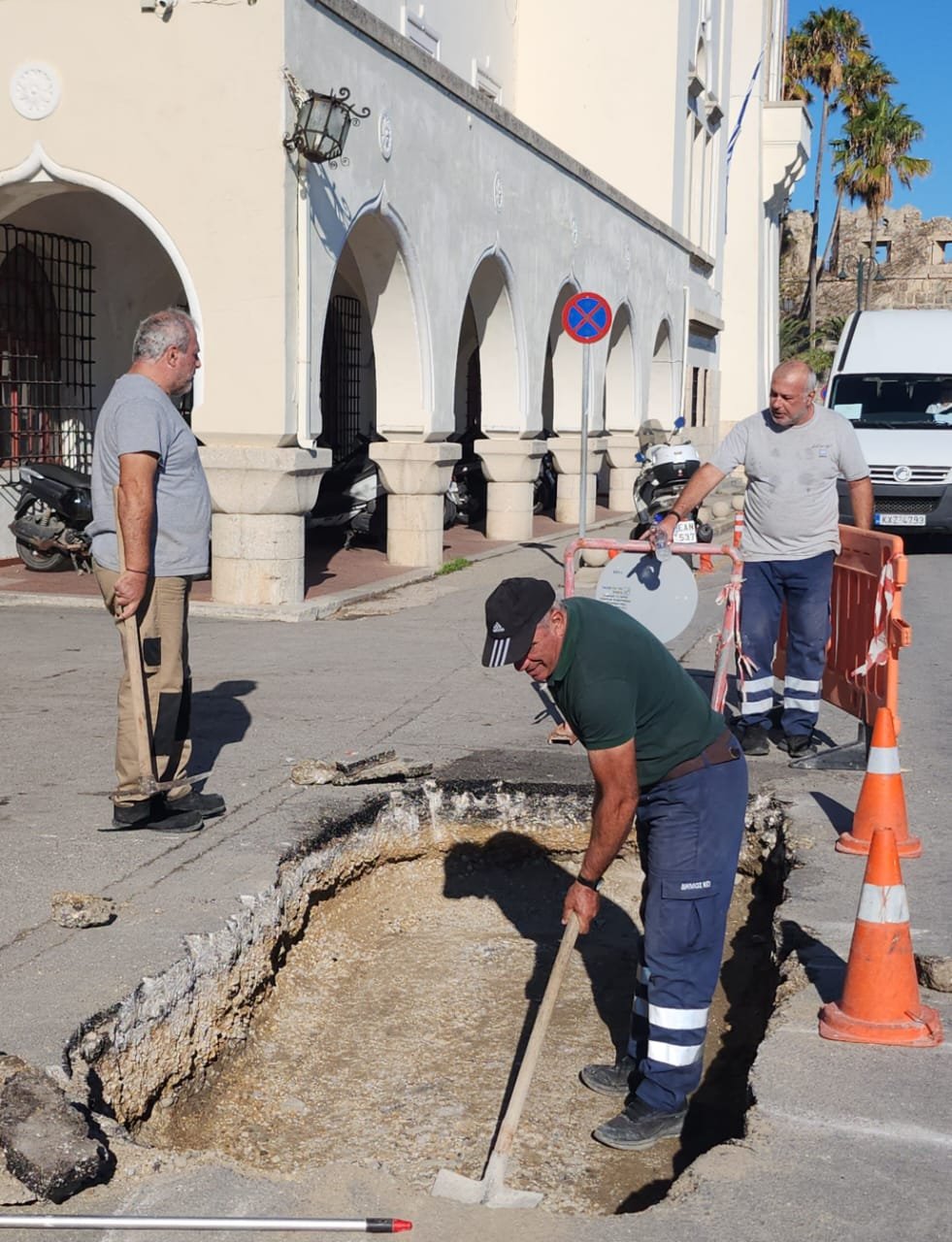 Συνεργεία του Δήμου, βρέθηκαν σήμερα στο σημείο έξω από το Αστυνομικό Τμήμα Κω, όπου έχει πάθει καθίζηση το οδόστρωμα, για να αποκαταστήσουν την βλάβη.