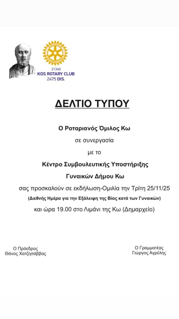Εκδήλωση για την Εξάλειψη της Βίας κατά των Γυναικών από τον Ροταριανό Όμιλο Κω και το Κέντρο Συμβουλευτικής