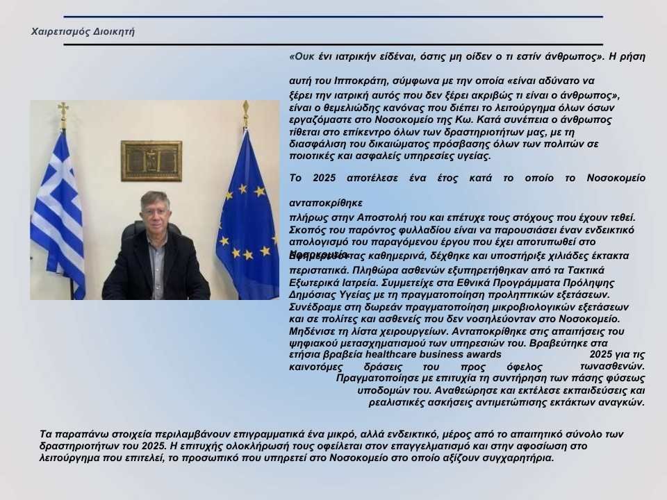 HomeΤοπική ΕπικαιρότηταΕυχές και Απολογισμός 2025 από το Νοσοκομείο Κω ΑνακοινώσειςΚοινωνία & ΠολιτισμόςΤοπική Επικαιρότητα Ευχές και Απολογισμός 2025 από το Νοσοκομείο Κω By SkorpiosNews12 23/12/2025 0 319 Share FacebookTwitterPinterestWhatsApp TagsΑπολογισμός 2025Δημόσια ΥγείαΚωςΝέο ΈτοςΝοσοκομείο ΚωΥγείαΧριστουγεννιάτικες Ευχές Share FacebookTwitterPinterestWhatsApp Previous articleΔιανομή τροφίμων από το ΒΑΚΟΥΦ ΚΩ.Next articleΕυχές από το Συμβουλευτικό Κέντρο Γυναικών Δήμου Κω ΣΧΕΤΙΚΑ ΑΡΘΡΑ Τοπική Επικαιρότητα Θόλος Καρδάμαινας: Ένα έργο που έγινε πράξη μετά από διεκδικήσεις – Έρχονται νέες εγκαταστάσεις σε Κέφαλο, Ζηπάρι και πόλη της Κω 03/03/2026 Κοινωνία & Πολιτισμός Ουρές στα πρατήρια στην Αθήνα – φόβοι για καύσιμα λόγω κρίσης στο Ορμούζ 02/03/2026 Κοινωνία & Πολιτισμός Ελλάδα σε επιφυλακή για Κύπρο: φρεγάτες και F-16 μετά από αναχαίτιση drones 02/03/2026 LEAVE A REPLY Cancel reply Comment: Please enter your comment! Name: Please enter your name here Email: You have entered an incorrect email address! Please enter your email address here Website: Save my name, email, and website in this browser for the next time I comment. - Advertisment - - Advertisment - - Advertisment - - Advertisment - - Advertisment - - Advertisment - ΤΑ ΠΙΟ ΔΙΑΒΑΣΜΕΝΑ Θόλος Καρδάμαινας: Ένα έργο που έγινε πράξη μετά από διεκδικήσεις – Έρχονται νέες εγκαταστάσεις σε Κέφαλο, Ζηπάρι και πόλη της Κω 03/03/2026 🛢️ Πετρέλαιο & Χρηματιστήριο: όταν η ενέργεια «μιλάει» στην αγορά 03/03/2026 Καιρός: Αίθριος με άνοδο θερμοκρασίας την Τρίτη 3 Μαρτίου σε Κω και Δωδεκάνησα 03/03/2026 Ρύζι θαλασσινών νηστίσιμο 03/03/2026 ΠΡΟΣΦΑΤΑ ΣΧΟΛΙΑ on Νέο κατάστημα LC Waikiki ανοίγει στη Ρόδο – Ξεκίνησαν οι διαδικασίες στελέχωσης Leonidas on Η συνταγή της ημέρας από τον σεφ Ηλία Μονογυιό – Παραδοσιακό παστίτσιο με κρέμα μπεσαμέλ