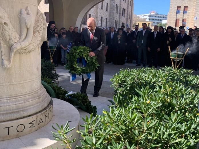 Ο κ. Νικητιάδης παρακολούθησε την επίσημη δοξολογία στον Ιερό Ναό του Ευαγγελισμού Ρόδου, κατέθεσε στεφάνι στον Βωμό της Πατρίδας, ενώ στη συνέχεια παρέστη στην παρέλαση και στις υπόλοιπες επετειακές εκδηλώσεις που κορυφώθηκαν με τη διέλευση ζεύγους αεροσκαφών της ομάδας επίδειξης DEMO F-16 ΖΕΥΣ της Πολεμικής Αεροπορίας.