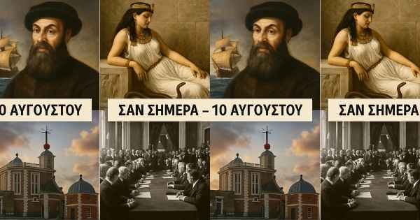 Η 10η Αυγούστου έχει χαραχτεί στην παγκόσμια ιστορία με γεγονότα που σημάδεψαν εποχές, αυτοκρατορίες και την ανθρώπινη γνώση. Από το τραγικό τέλος της Κλεοπάτρας και το μεγάλο ταξίδι του Μαγγελάνου, μέχρι διπλωματικές συνθήκες που άλλαξαν τον χάρτη και την επιστημονική πρόοδο στην αστρονομία.