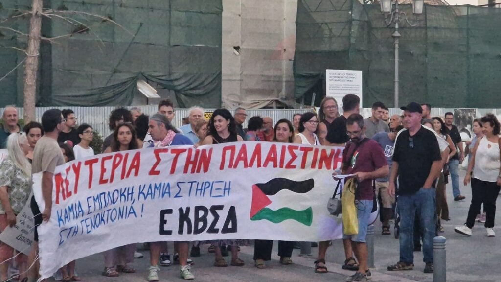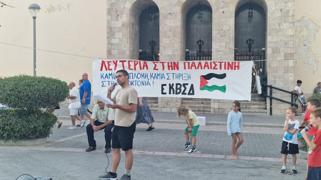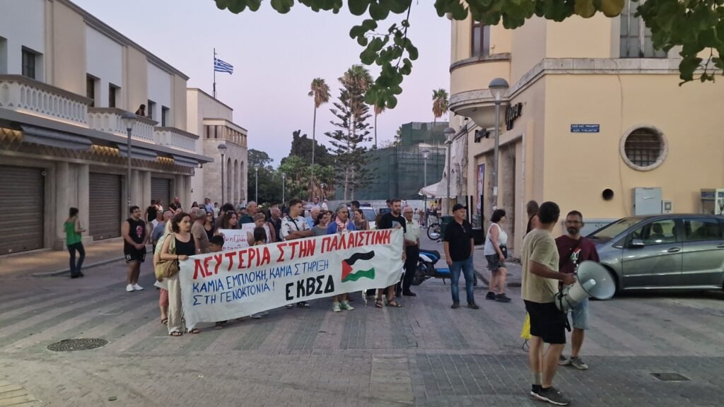 Το Εργατικό Κέντρο ΒΣΔ πραγματοποίησε σήμερα, Κυριακή 24 Αυγούστου, συγκέντρωση διαμαρτυρίας στην πλατεία Ελευθερίας της Κω, καταδικάζοντας τη γενοκτονία που διαπράττεται εις βάρος του παλαιστινιακού λαού.