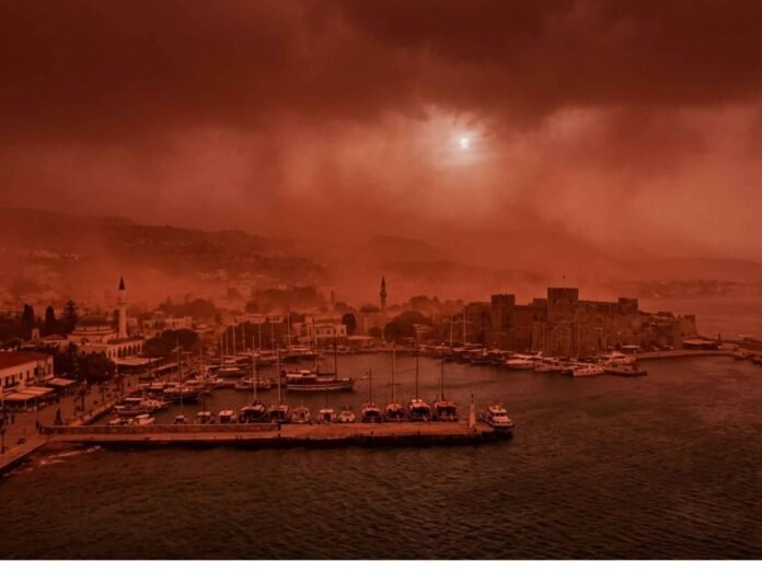 Η ματιά του Ερρίκου: Η σκόνη θα μας ταλαιπωρήσει μέχρι την Παρασκευή. Υπομονή, κλειστά παράθυρα και καμία δουλειά έξω μέχρι να φύγει η λάσπη το Σάββατο. Η εικόνα από το Rodosreport επιβεβαιώνει την ανάγκη για προσοχή, ειδικά για τις ευπαθείς ομάδες.