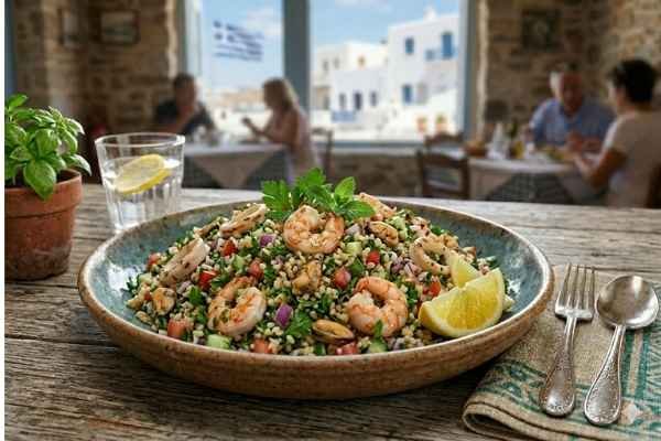 - Σερβίρισμα: Σερβίρουμε το ταμπουλέ με θαλασσινά ζεστό ή κρύο, με επιπλέον λεμόνι στο πλάι.