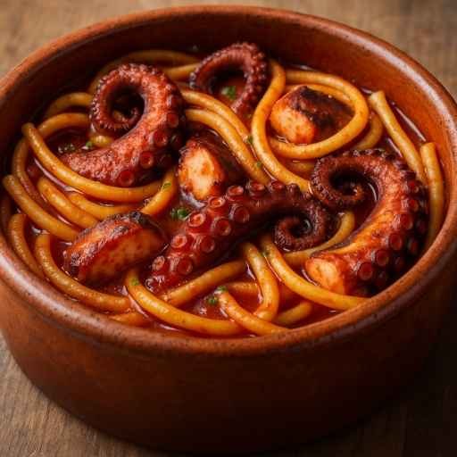 Ο σεφ Ηλίας Μονογυιός υπογράφει ένα πιάτο που μυρίζει θάλασσα και παραδοσιακή κουζίνα. Το τρυφερό χταπόδι σιγομαγειρεύεται σε κόκκινο κρασί, δένεται με φρέσκια ντομάτα και αρωματικά, και σερβίρεται με χοντρό μακαρόνι στο πήλινο, όπως οι γιαγιάδες μας μαγείρευαν στα παλιά σπίτια. Μια συνταγή που συνδυάζει παράδοση και γκουρμέ γεύση, βγαλμένη λες από ταινία.