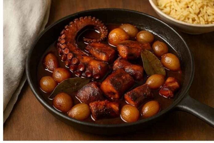 Φίλοι του «Σκορπιός News 12», για τη Τετάρτη 19 Νοεμβρίου ο σεφ Ηλίας Μονογυιός παρουσιάζει ένα πιάτο που ενώνει την νησιώτικη παράδοση με μια σύγχρονη, τολμηρή πινελιά: Χταπόδι στιφάδο με καραμελωμένα κρεμμύδια, Μαυροδάφνη και μια διακριτική νότα μαύρης σοκολάτας 70%. Ένα πιάτο βαθύ, αρωματικό και ιδανικό για το κρύο.