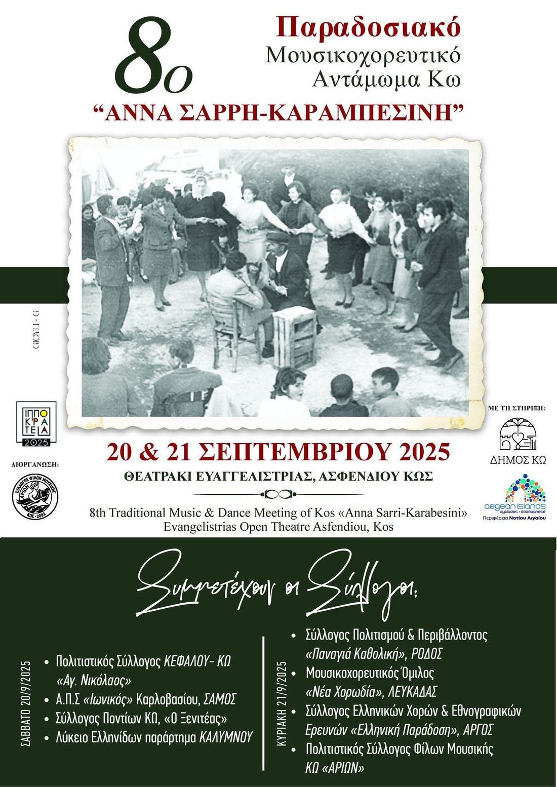 Το 8ο Παραδοσιακό Μουσικοχορευτικό Αντάμωμα Κω “ΑΝΝΑ ΣΑΡΡΗ-ΚΑΡΑΜΠΕΣΙΝΗ” είναι γεγονός! Μία συνδιοργάνωση του συλλόγου μας, με τον Δήμο Κω και την Π.Ν Αιγαίου!