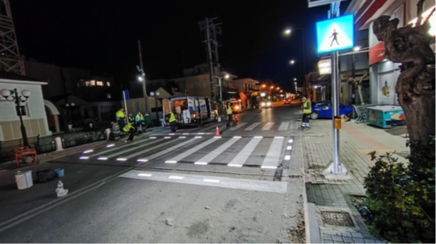 σήμανσης τύπου LED, οι οποίες είναι ενσωματωμένες τόσο στην άσφαλτο όσο και στο