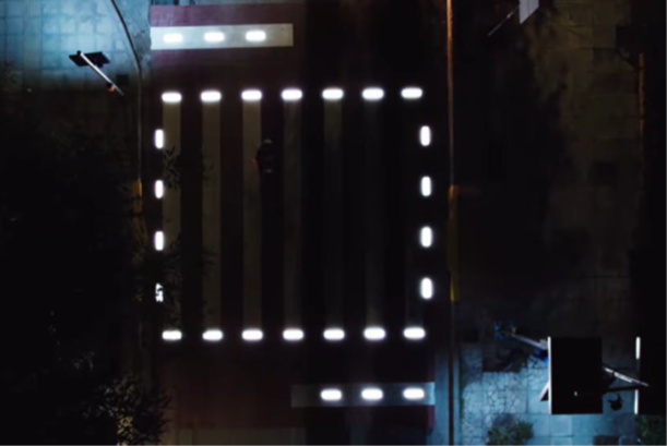 Αποτέλεσμα της ενεργοποίησης είναι ο φωτισμός της πεζοδιάβασης από τις συσκευές